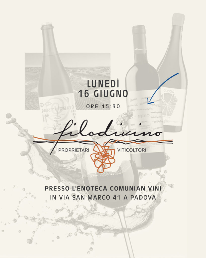 Lunedì 16 Giugno dalle 15:30, presso l’Enoteca Comunian Vini, ti invitiamo ad una masterclass dedicata ai prodotti dell’azienda vitivinicola Filodivino, realtà marchigiana guidata dal principio di responsabilità nei confronti della natura e delle persone che vengono coinvolte.