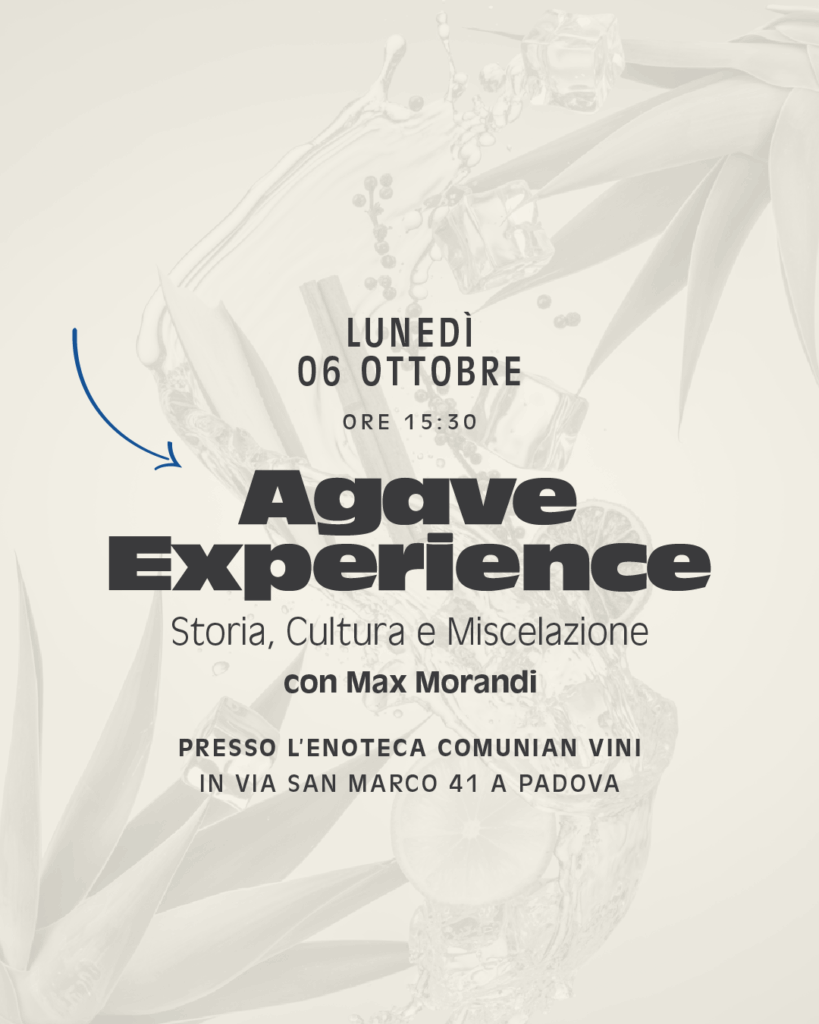 Lunedì 06 Ottobre dalle 15:30, presso l’Enoteca Comunian Vini, Agave Experience: un viaggio tra storia, cultura e miscelazione. Con Max Morandi e Daniele Benetello, scoprirai l’anima di tequila e mezcal, tra tradizione messicana, degustazioni e cocktail contemporanei.