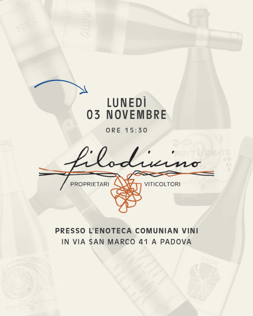 Lunedì 03 Novembre dalle 15:30, presso l’Enoteca Comunian Vini, ti invitiamo ad una masterclass dedicata ai prodotti dell’azienda vitivinicola Filodivino, realtà marchigiana guidata dal principio di responsabilità nei confronti della natura e delle persone che vengono coinvolte.