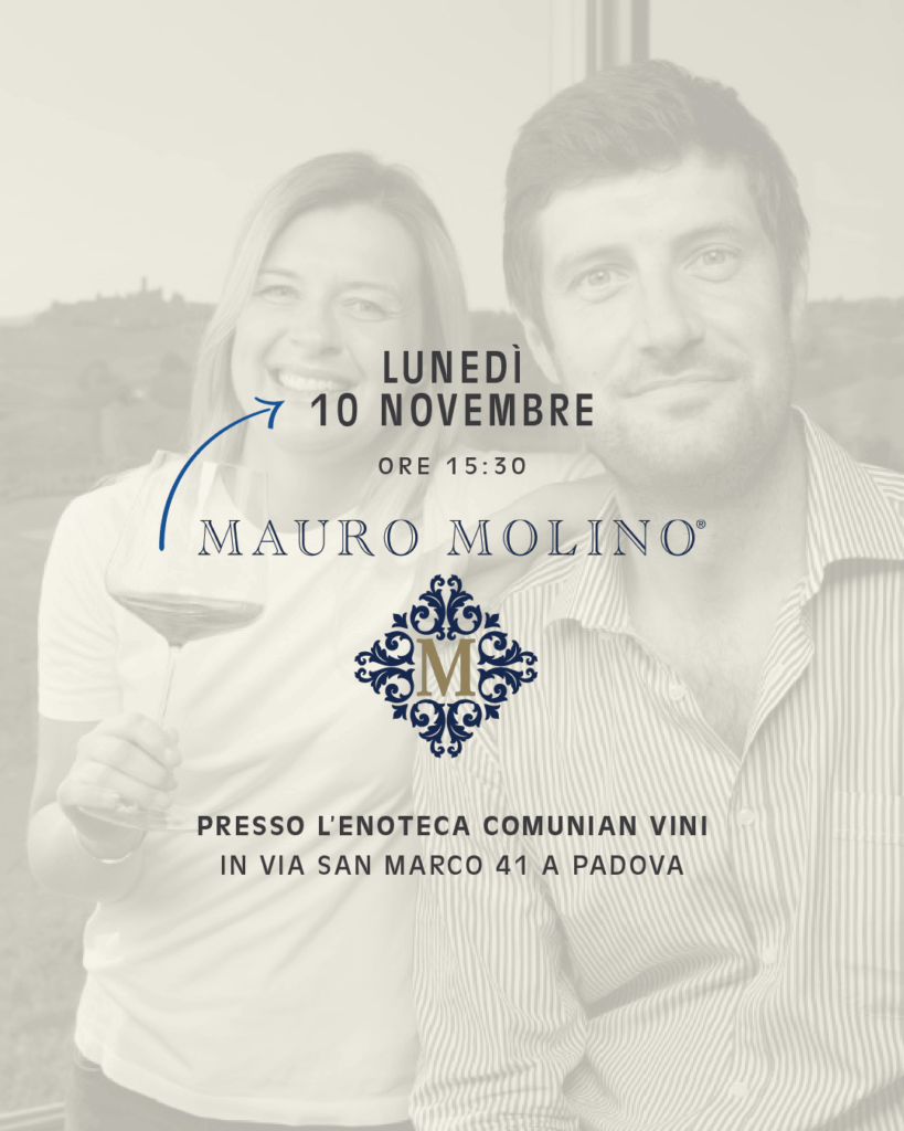Lunedì 10 novembre dalle 15:30, presso l’Enoteca Comunian Vini, vi aspettiamo per una degustazione dedicata ai vini della cantina Mauro Molino, eccellenza piemontese che racconta la storia e il carattere di un territorio unico.