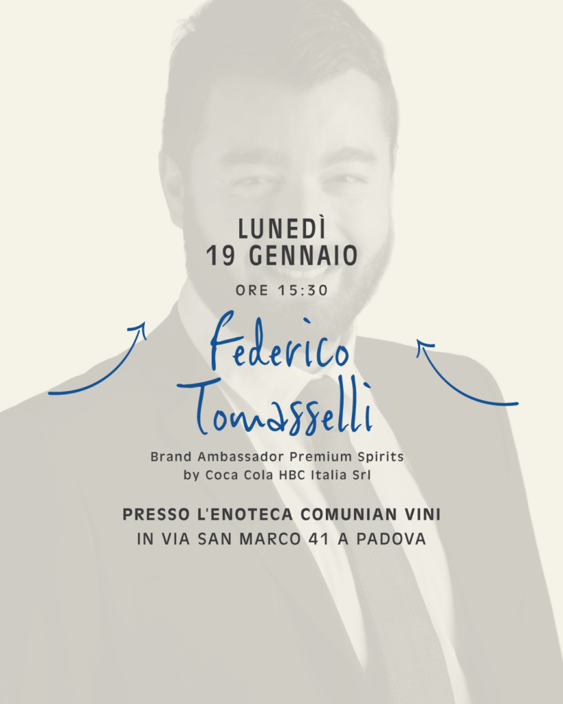 Lunedì 19 gennaio dalle 15:30, presso l’Enoteca Comunian Vini, vi aspettiamo per una masterclass dedicata ai Premium Spirits, guidata da Federico Tomasselli, Brand Ambassador Premium Spirits – Coca-Cola HBC Italia.