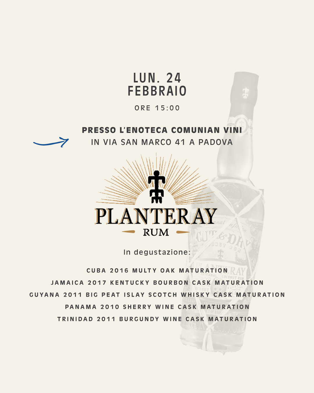 Lunedì 19 gennaio dalle 15:30, presso l’Enoteca Comunian Vini, vi aspettiamo per una masterclass dedicata ai Premium Spirits, guidata da Federico Tomasselli, Brand Ambassador Premium Spirits – Coca-Cola HBC Italia.